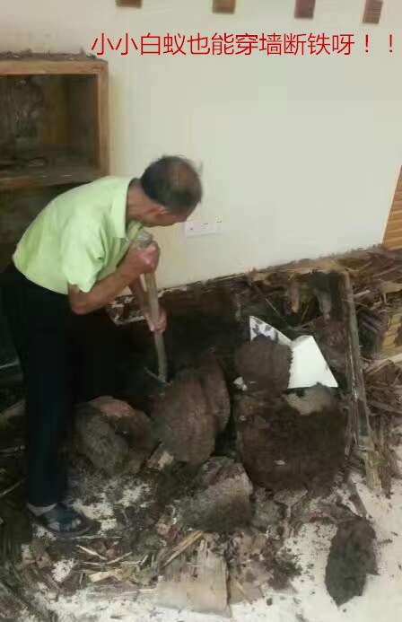 地址:廣東省珠海市香洲區(qū)胡灣路72號.敲開客廳墻角,隔熱板已經(jīng)被掏空,成千上萬的白蟻不斷啃噬著木頭,儼然一個個小小的白蟻王國。近日,珠海市恒建白蟻蟲鼠防治有限公司技術(shù)人員李師傅在御龍山莊某別墅關(guān)女士家中見到這幅景象也頗為吃驚。大概4平方米的墻體已經(jīng)被白蟻占據(jù),估計有數(shù)十萬只白蟻。 “從事滅蟻工作二十年的李師傅還是頭一次見到這么大的白蟻巢,估計得有200多斤重。”幸好發(fā)現(xiàn)及時,如果再發(fā)展下去,對整幢別墅的影響將會是破壞性的。屋主關(guān)女士介紹說,往年每到春末夏初的時候,家里就莫名其妙的跑出許多小飛蟲,而且數(shù)量龐大,大多趴在墻上,飛的時候還會有翅膀掉下來,用了許多殺蟲劑,結(jié)果效果一直不是很好。一家人被小飛蟲給折騰的十分難受,甚至有搬走的想法。“前些日子,小飛蟲又出現(xiàn)了,而且比往年的多出了一倍,有經(jīng)驗(yàn)街坊告訴關(guān)女士可能是白蟻?zhàn)魉睢!庇谑顷P(guān)女士撥打了本公司電話尋求幫助,接到電話公司技術(shù)人員李師傅第一時間趕到現(xiàn)場,經(jīng)過現(xiàn)場勘查發(fā)現(xiàn)“元兇”—一大家子的白蟻。“這種白蟻個頭不大,大約1厘米長,翅翼較長,乳白色,橢圓形。但數(shù)以萬計的白蟻同時飛出來,造成的視覺沖擊可想而知。”李師傅介紹說,關(guān)女士家客廳這面墻有塊防水層,防水板是木質(zhì)的。最近這些天天氣變化較頻繁,加上適宜的氣溫,就為這些白蟻提供了很好的繁殖環(huán)境,于是白蟻就出來了。對于家中的木質(zhì)裝潢造成一定的影響,但它不會攻擊人類。同時,市民發(fā)現(xiàn)白蟻后,不要盲目使用殺蟲劑噴殺,不要隨意搬動被白蟻危害的物品或破壞蟻路、蟻巢,否則會使白蟻四處逃散,造成蟻害面積擴(kuò)大,從而增加滅治的難度,應(yīng)妥善保護(hù)好白蟻危害現(xiàn)場,及時與專業(yè)白蟻防治單位聯(lián)系進(jìn)行滅治。